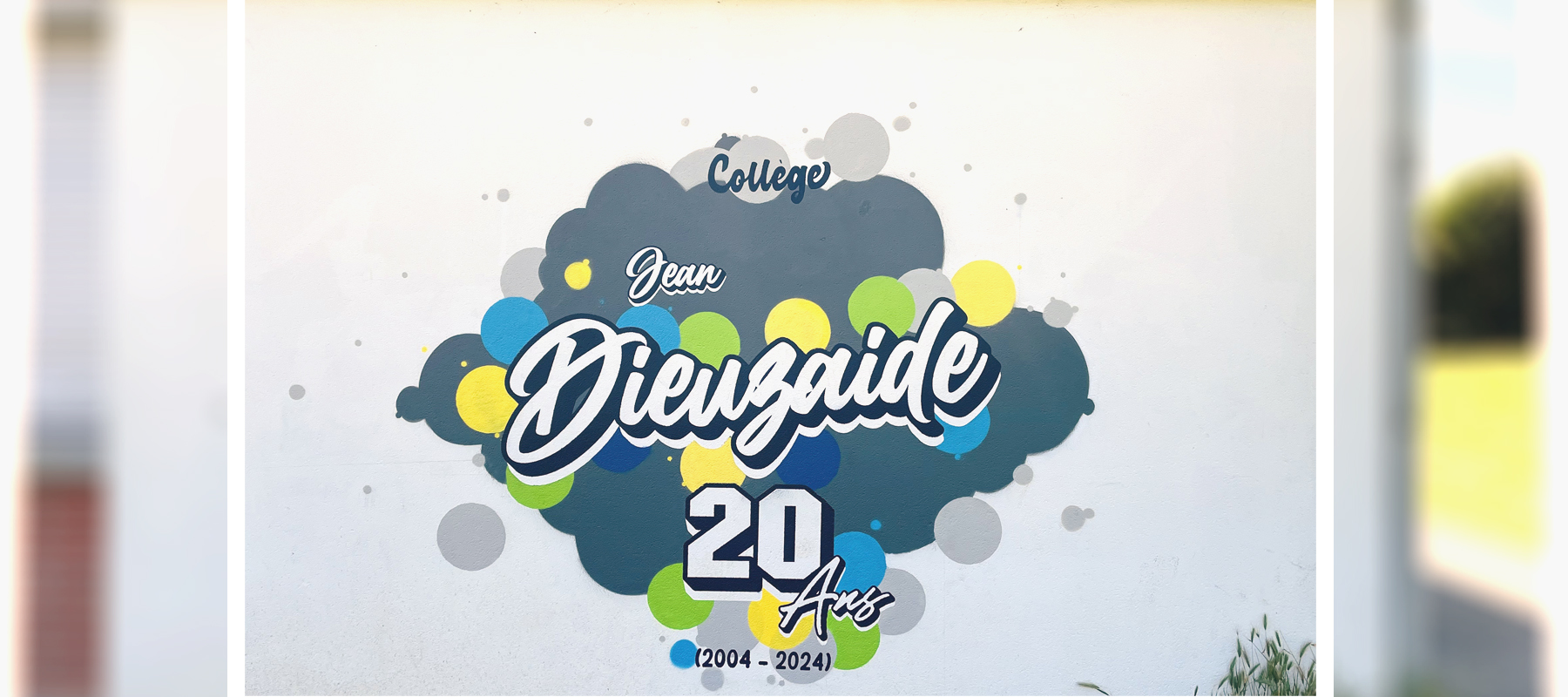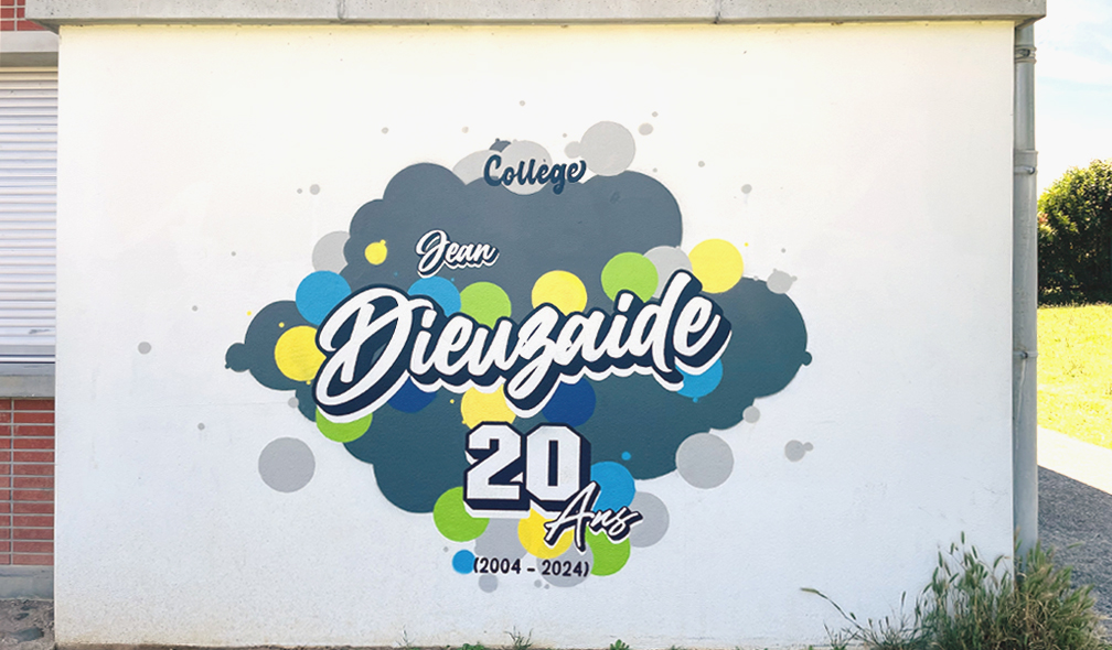 Fresque murale réalisée à l’occasion de la fête du collège, célébrant les 20 ans de l’établissement Jean Dieuzaide.