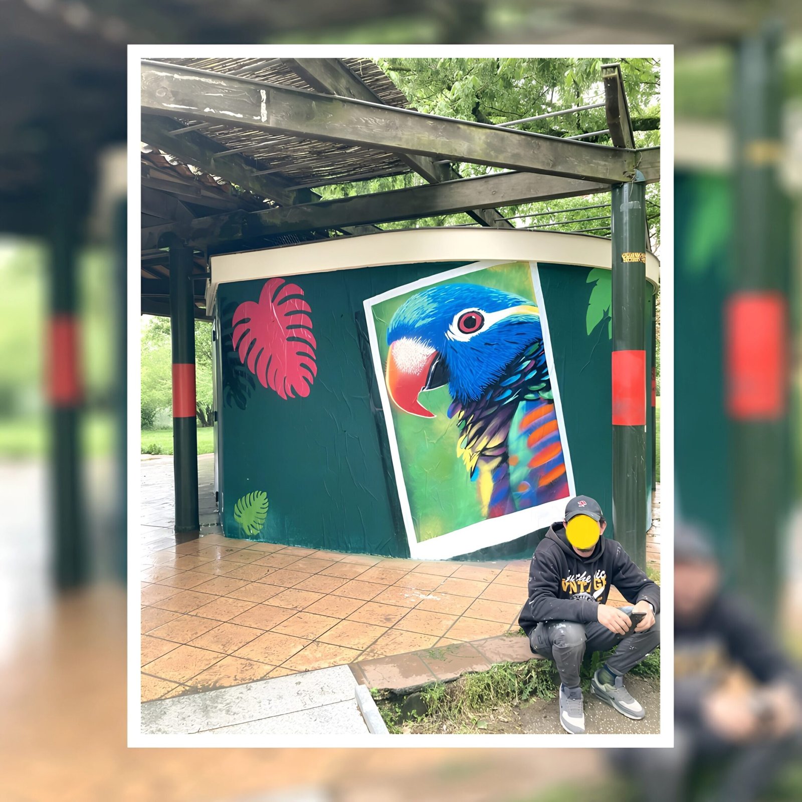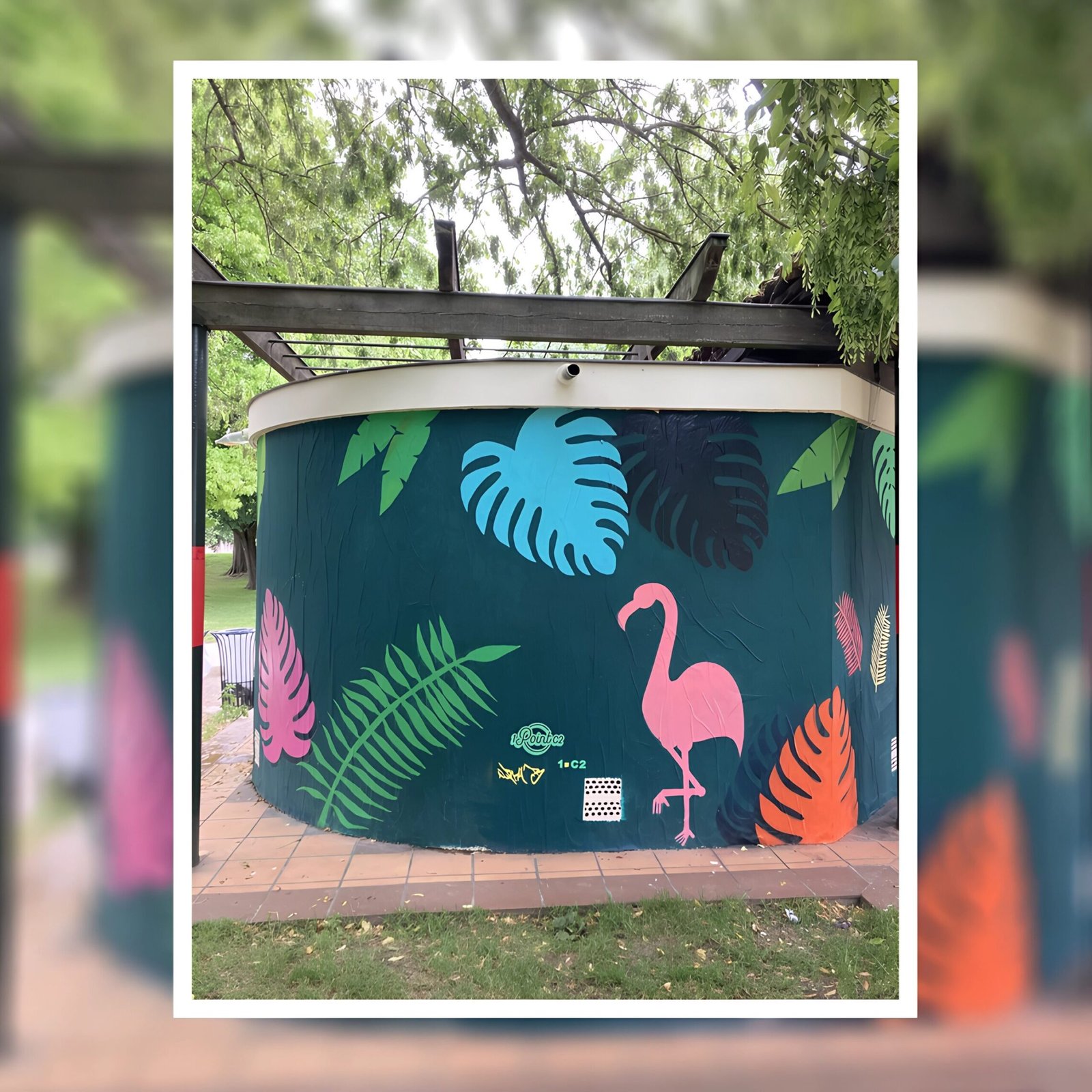 La Prairie des Filtres, véritable poumon vert au cœur du quartier Saint-Cyprien à Toulouse, a accueilli cette création. Le bâtiment choisi, un commerce saisonnier classé Monument Historique, a nécessité une protection intégrale par une couche de papier avant intervention.